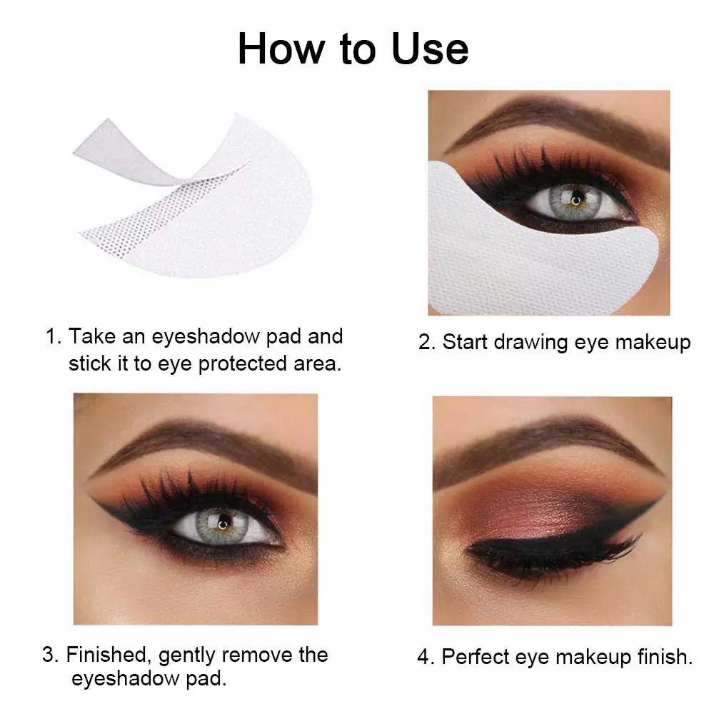 1. Снимите верхние углы подложки и нанесите наклейку под глазом 2. Нанесите макияж глаз 3. Когда закончите, Аккуратно удалите наклейки и избавьтесь от них