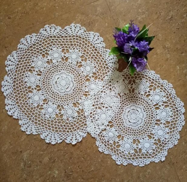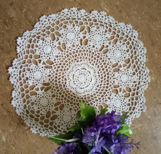 Handmade Lace Round cotton table place mat pan pad Cloth crochet placemat cup mug wedding home tea coffee coaster doily kitchen