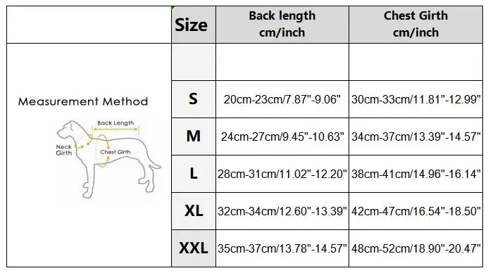 S -- Длина корпуса: 20-23 см/7,87 ''-9,06'',Обхват груди: 30 см-33 см/11,81 ''-12,99''