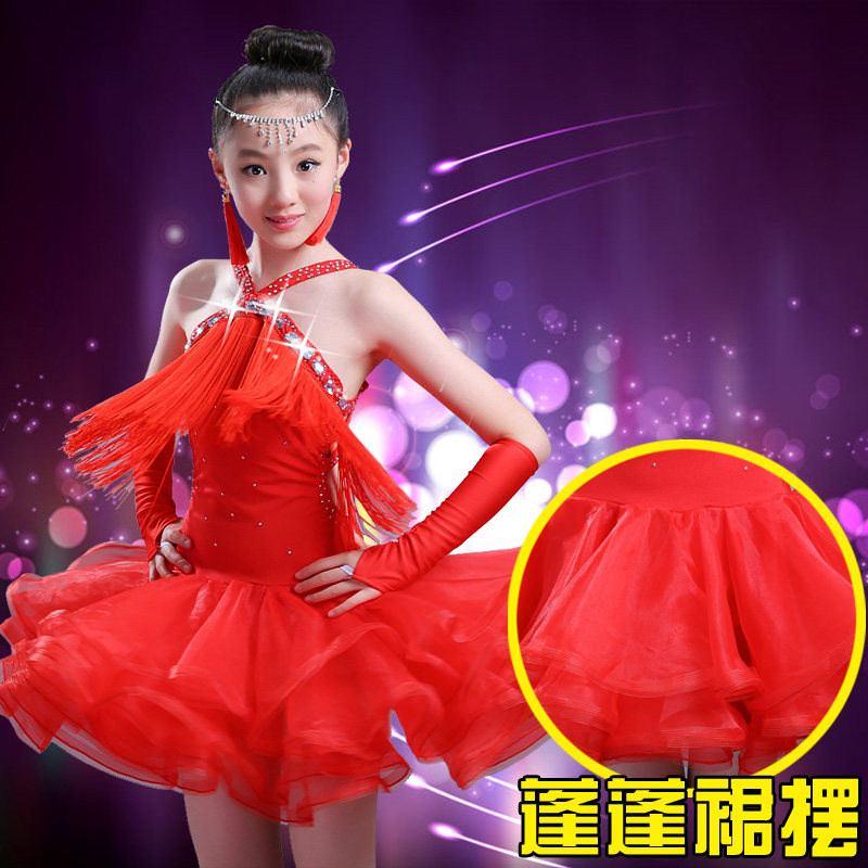 Новые детские юбки для латинских танцев и танцевальная одежда с бахромой и стразами для девочек детская одежда для латиноамериканских выступлений красного цвета