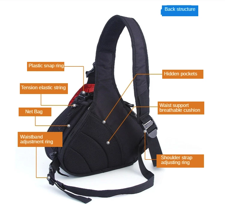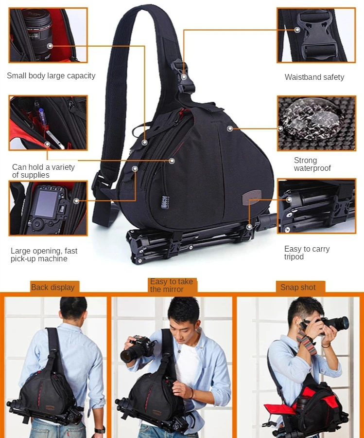Плечевой ремень в виде сот, Высококачественная молния, автократическая пряжка, удобная конструкция на шнурке, основная зона хранения, отличная молния, износостойкий водонепроницаемый нейлон, ремень для штатива, уникальный эстетический штрих
