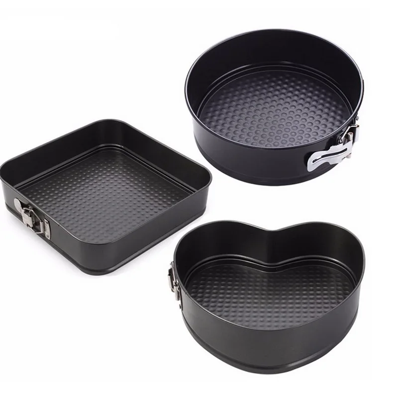 3. Три размера и формы-этот набор состоит из 3 частей антипригарных и герметичных кастрюль, различных размеров и форм, предназначен для изготовления чизкейков и многого другого. Сковородки имеют боковины, которые не имеют основания, выпуская десерты без поломки.