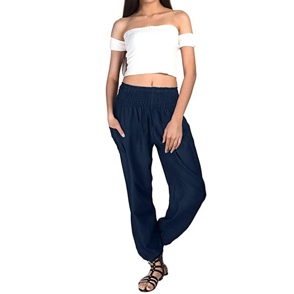 Женские брюки с высокой талией, повседневные свободные длинные обтягивающие брюки для йоги, Палаццо