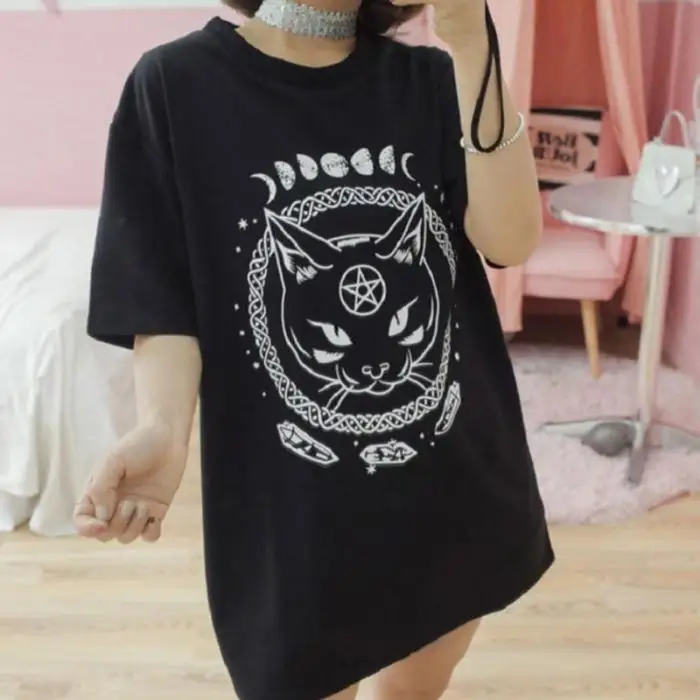 2. Простые, но очаровательные топы с принтом котенка, костюмы для школы, свиданий, офиса и т. д.