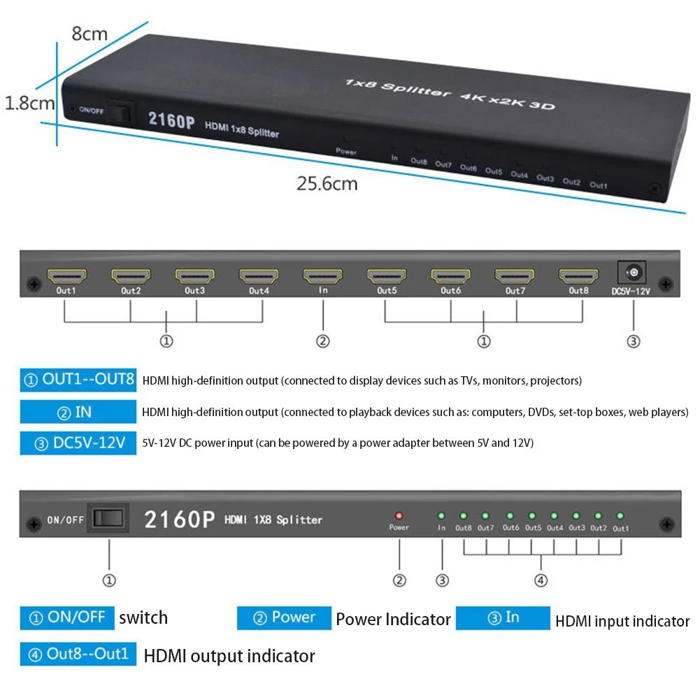 1 вход сигнала HDMI, присваивается 8 выходов HDMI
