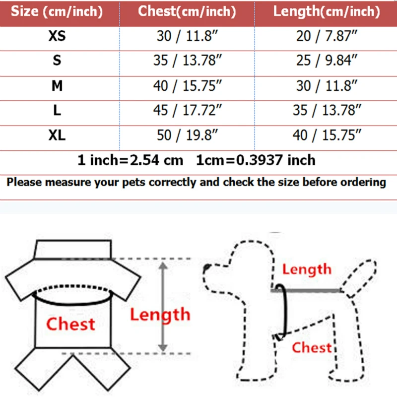 Обратите внимание, что размеры различных продуктов отличаются, пожалуйста, следуйте нашей таблице размеров! Выберите размер одежды в основном в зависимости от длины спины питомца! Сзади от шеи до хвоста, длина хвоста не указана, так как измерения у каждого человека разные, возможна погрешность в 1-2 см, пожалуйста, отнеситесь с пониманием. Продукты независимо от пород собак и пола. Если у вас есть какие-либо вопросы, пожалуйста, свяжитесь с нами. Из-за разницы во времени, возможно, мы не сможем ответить вам сразу. Мы ответим вам как можно скорее, когда будем в сети. С наилучшими пожеланиями.