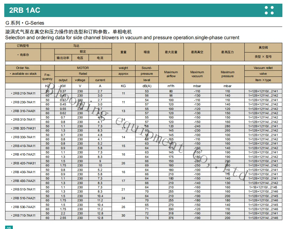 Боковая воздуходувка G-series имеет разряженные двигатели напряжения для 50 Гц и 60 Гц класса защиты IP55 (класс изоляции F) одобрены UL,CE,CCC. Это делает их идеальным решением для широкого использования. Они могут быть использованы без каких-либо изменений или испытаний в Европе, Америке и Азии. Они в основном доступны на складе. Они доступны для ваших требований в любое время.