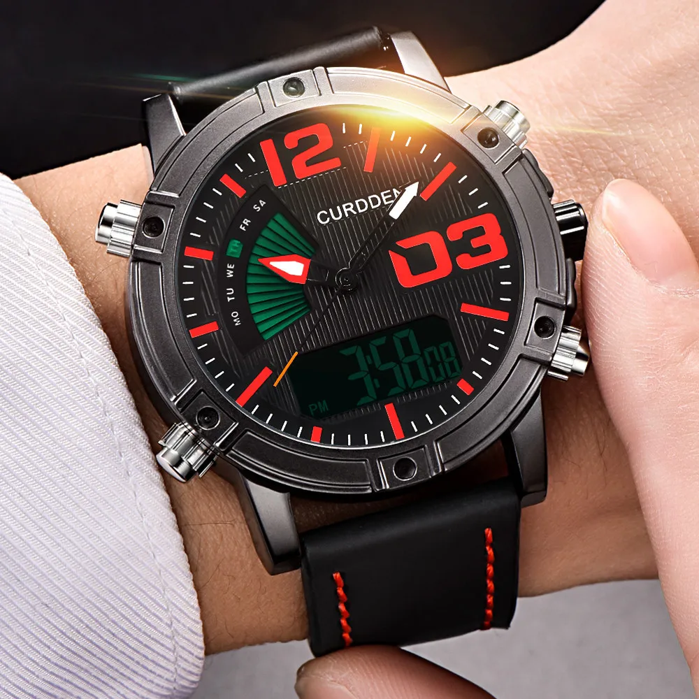 Мужские спортивные часы светодиодный военный кожаный Аналоговый кварцевый браслет подарок