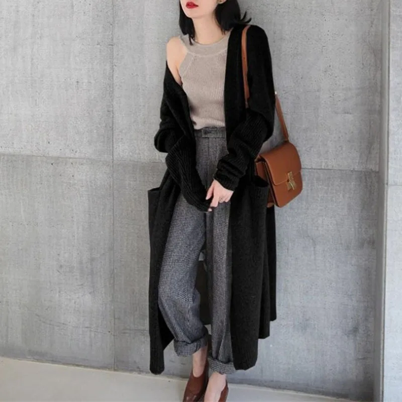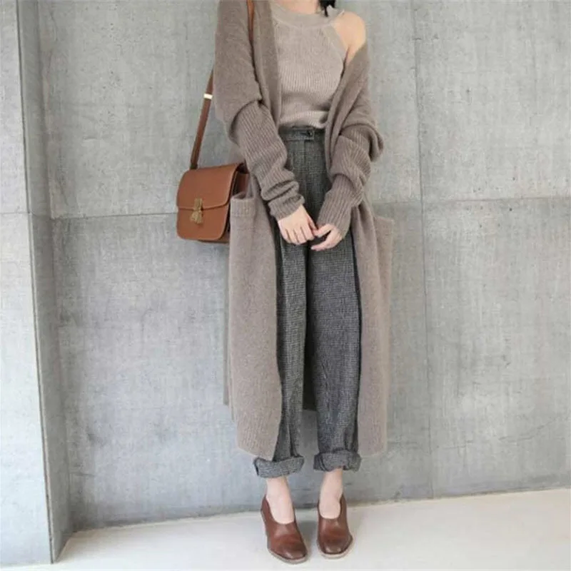 * Описание товара: новый осенний Женский Повседневный Свободный Вязаный Кардиган с длинным рукавом, длинная верхняя одежда