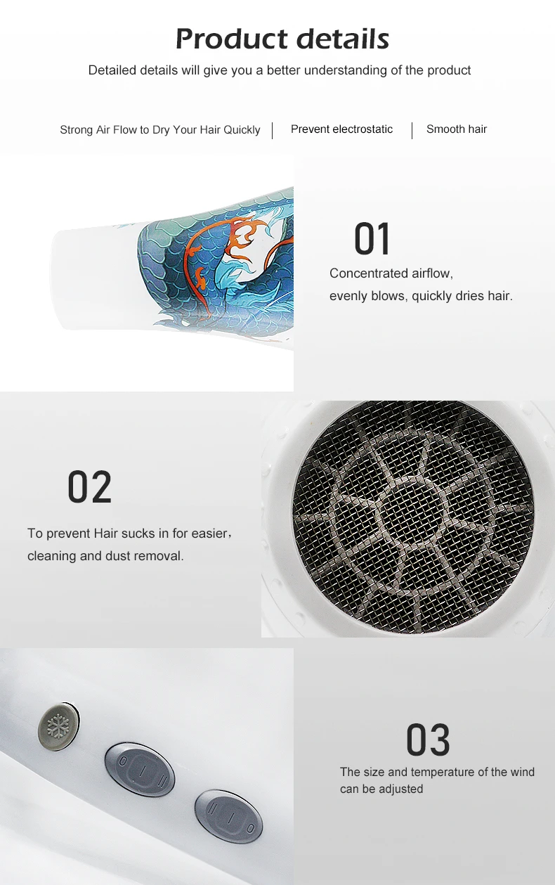 Рабочее напряжение: 220-240 в 50-60 Гц. Потребляемая мощность: 1400-1800 Вт Тип вилки: EU.US.UK (добавить адаптер).AU (добавить адаптер) Посылка включает в себя: 1 * фен для волос 1 * перчатки 1 * парикмахерская расческа 2 * зажим для волос