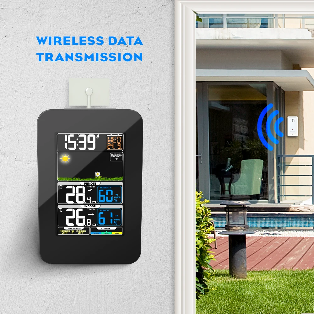 Willess метеостанция, C36N Цифровая метеостанция гигрометр с большим цветным ЖК-дисплеем, наружный датчик, сигнал повтора, барометр для погоды, температура и влажность