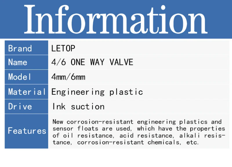 JYY односторонний клапанПластиковая чернильная трубка клапан соединитель Адаптер для флоры Gongzheng принтер марки Zhongye