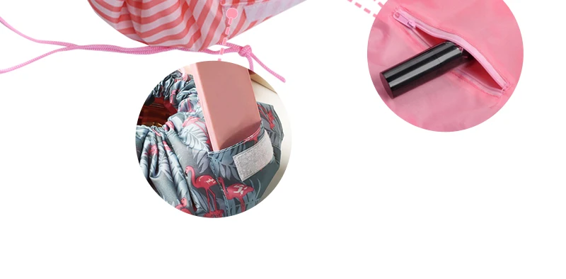 Сумки для косметики на шнурке, милые портативные дорожные розовые органайзеры для косметики, помады, фламинго, вишни, наружный карман