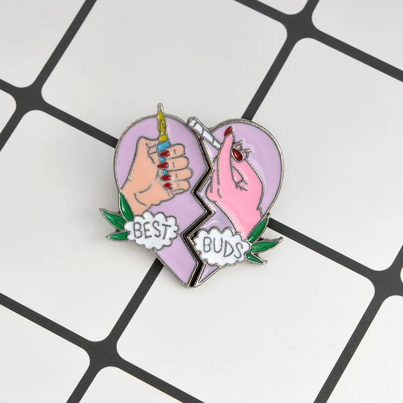 2 шт./компл. лучшие друзья разбитое сердце брошь набор Эмаль розовое платье ручной работы с сигареты лучшие друзья Броши куртка на булавке значок гей любовника, ювелирное изделие, подарок