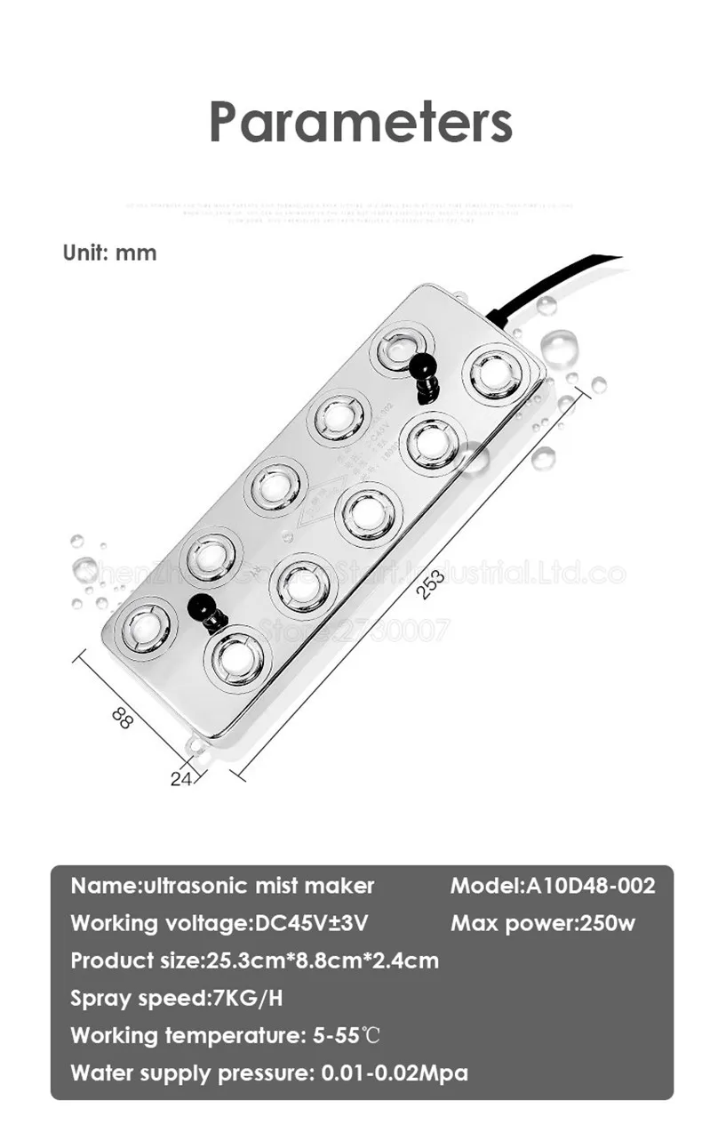 Распыления способность: 7 кг/ч (при температуре 35 ℃, уровня воды, чем распылитель 1-1,5 метров)