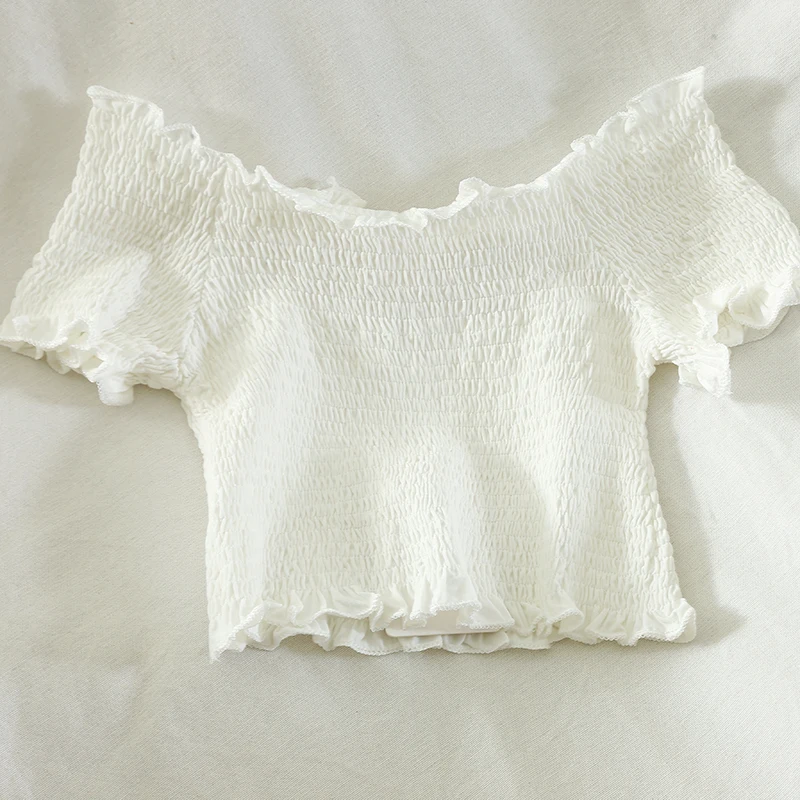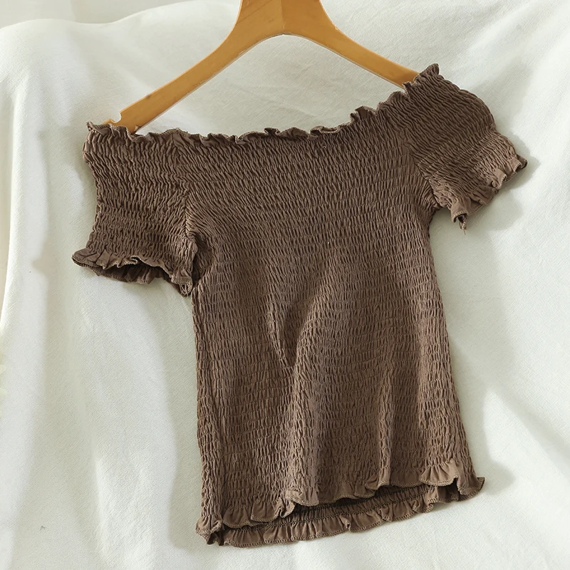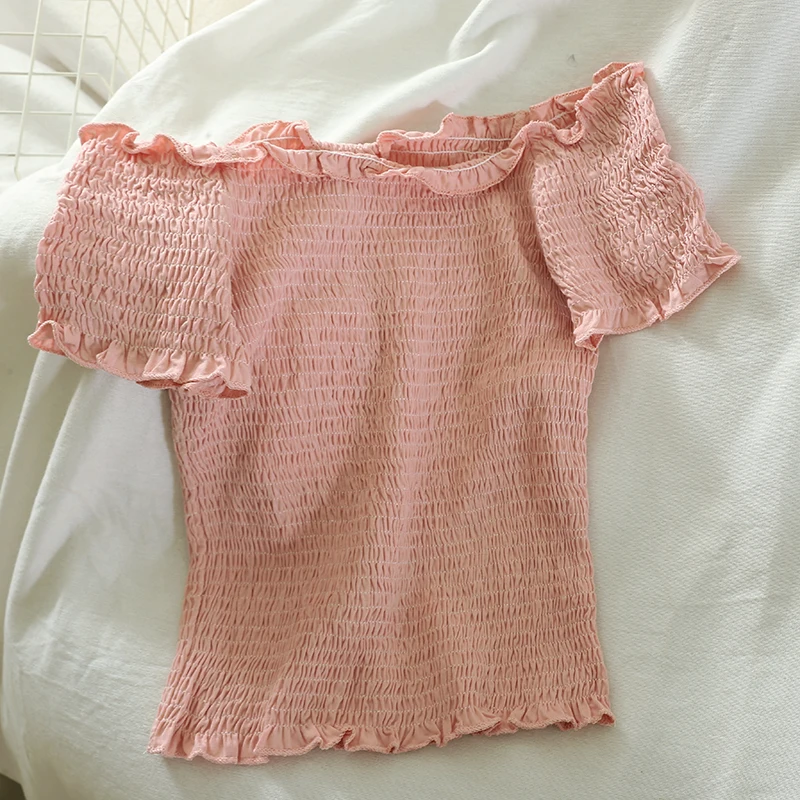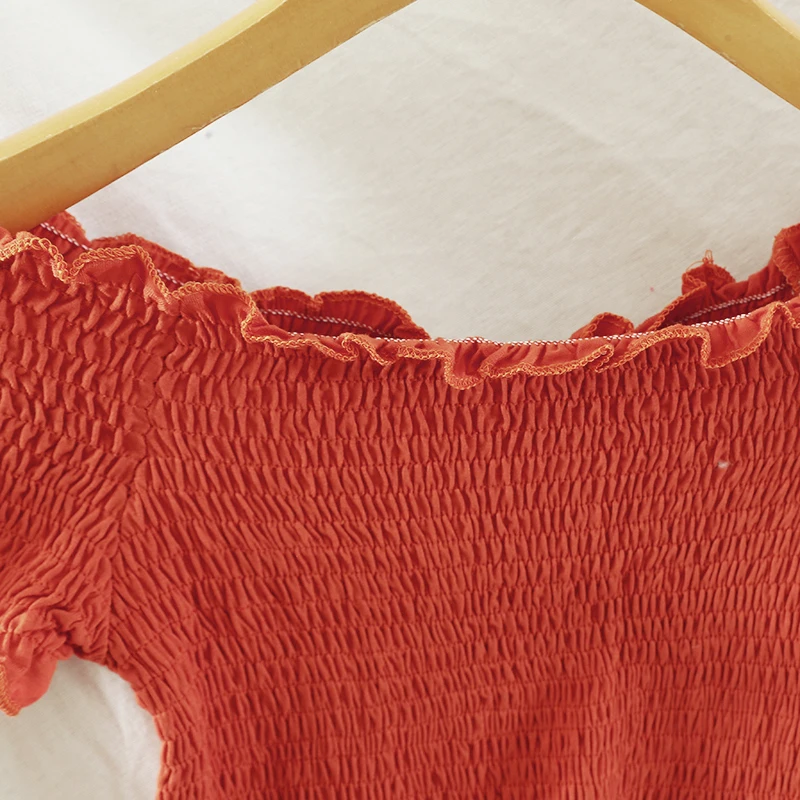 Плечи Слэш шеи эластичный, бюст 48 см эластичный до 100 см, рукав 12 см, длина 27 см сверху вниз