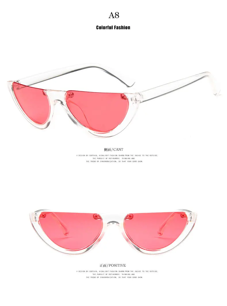 Женские полукруглые солнцезащитные очки с полукруглой оправой, Ретро стиль, сексуальные женские очки кошачий глаз, цветные, белый, черный, красный