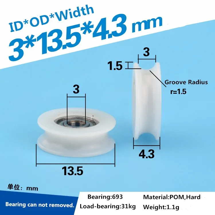 [Ролик Размеры]:ID = 3 мм, диаметр = 13,5 мм, Ширина = 4,3 мм