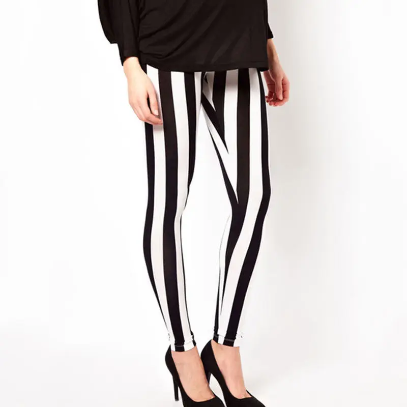 * Описание товара: Модные женские повседневные черно-белые эластичные Стрейчевые леггинсы в полоску; длинные брюки