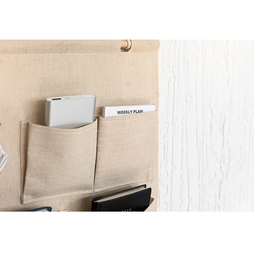 Лен/хлопок ткань поверх Стены Двери шкафа окна подвесная Сумка Для Хранения Чехол сумка-Органайзер, бежевый парусиновые 7-карман на стене
