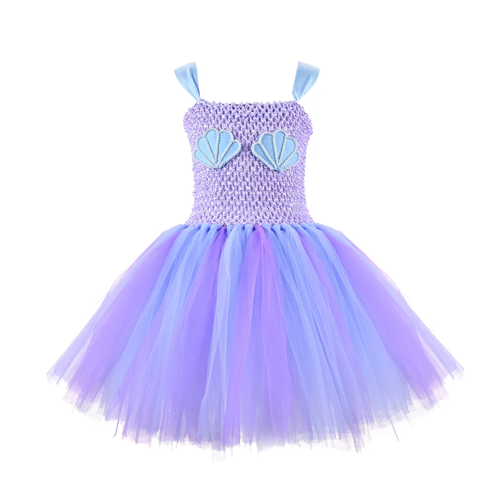 Mermaid Princess Tutu Dress with Headband Blue Purple Under The Sea Shell Tulle Girl Birthday Party Dress Kids Halloween Costume