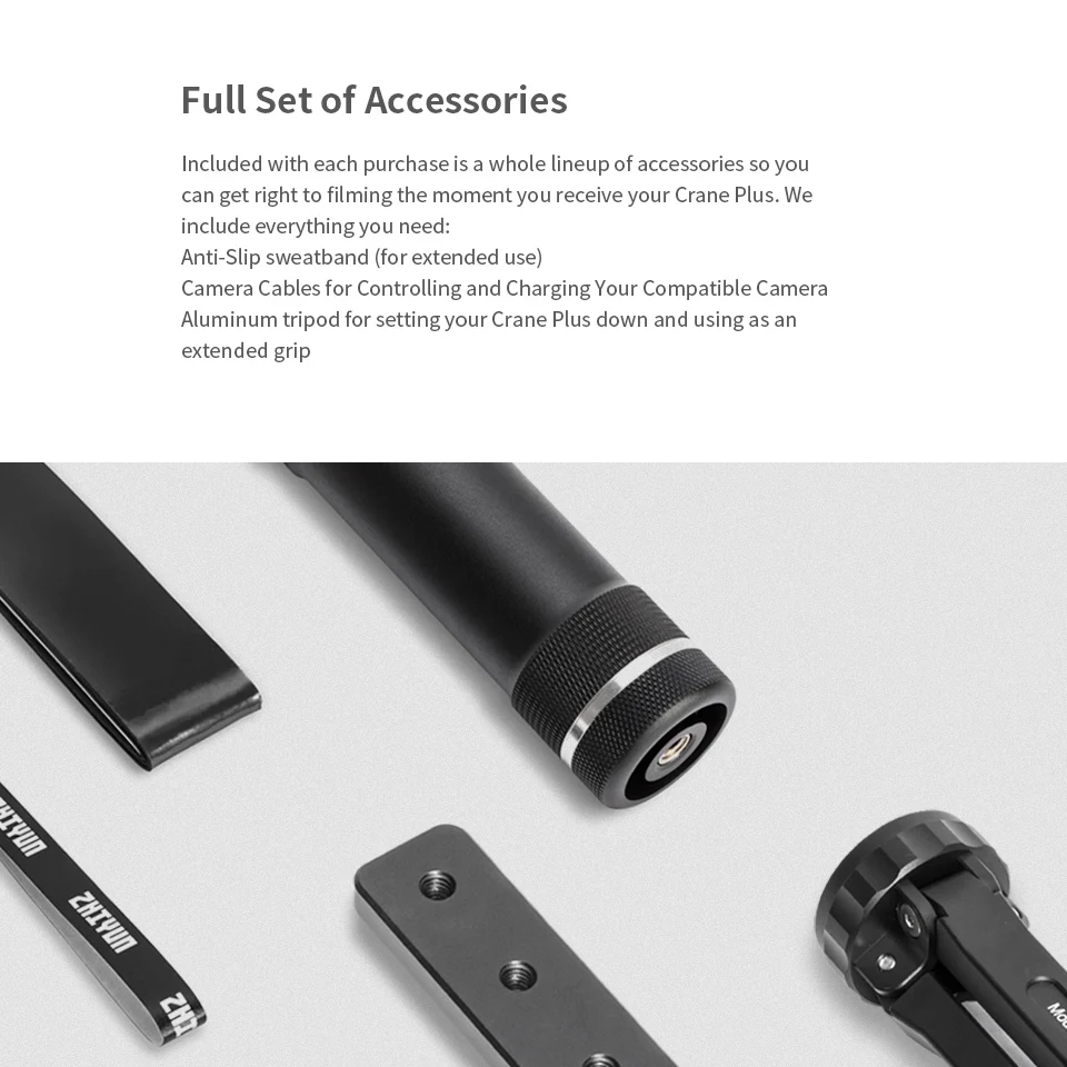 Карданный стабилизатор Crane Plus-1 шт. 1 x Батарея отсек 1 х 26500 зарядное устройство 2 литий-ионных аккумулятора 26500 1 кабель Micro USB 1 х кабель управления камерой Panasonic 1 х кабель управления камерой Sony 2 x Винт объектива для крепежных винтов 1 x Объектив Поддержка 1 x TRM03 штатив-Трипод Руководство пользователя (1 шт.)