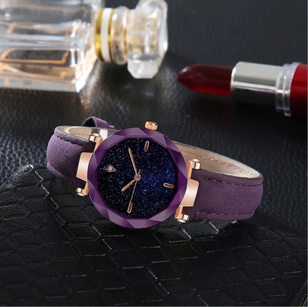 Подходит для любого случая Прекрасный подарок для друзей и семьи Более уверенное и привлекательное участие в деловых мероприятиях Поверхность звездного неба приносит больше мира Модные тренды подчеркивают личный Шарм Звездный циферблат с золотым ремешком делает вас еще более сияющими в толпе Идеальный подарок для мамы, жены или друзей.Особенности: