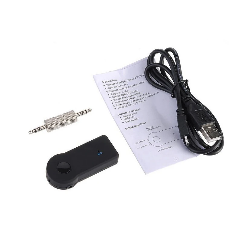 2. Подключите приемник к вашему колонки с 3,5 мм кабель со штыревыми соединителями на обоих концах для подключения аудио разъем или 3,5 мм кабель со штыревыми соединителями на обоих концах для подключения аудио кабель для подключения динамиков и приемник (в том случае, если нет звука, пожалуйста, убедитесь, что он был полностью вставлен).