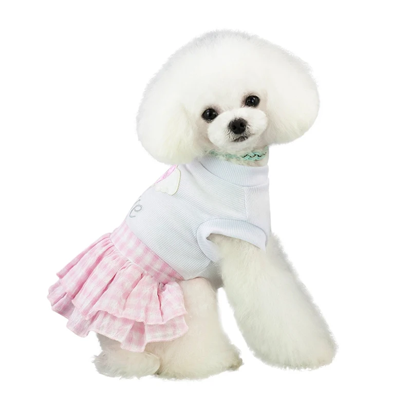 2. Задняя часть футболки выполнена в виде сердечка, а Короткое платье-в клетку, которое может полностью показать очарование собак и позволит собакам привлечь больше внимания.