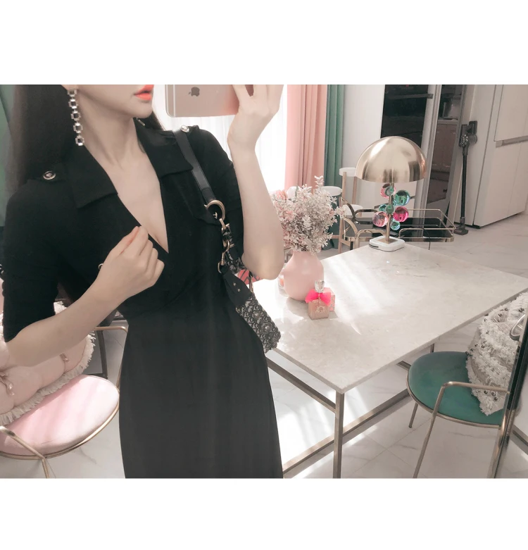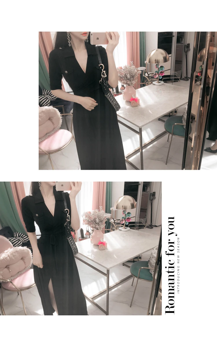 2019 кружевное приталенное платье с разрезом, тонкое женское платье с коротким рукавом и v-образным вырезом в горошек