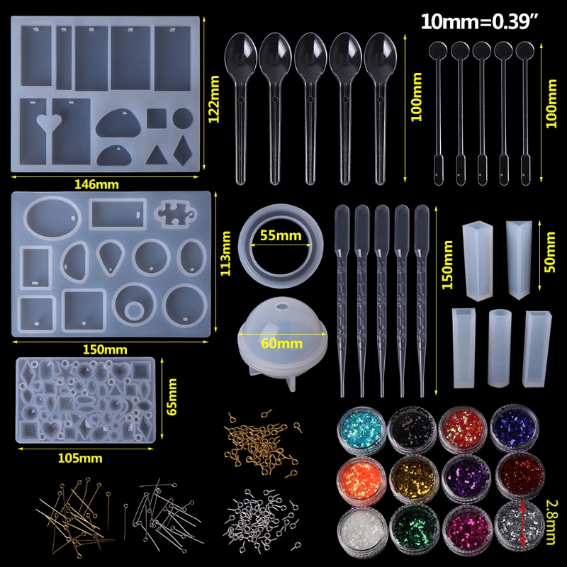 2. Включает в себя несколько силиконовых форм, блестящий порошок, булавки и т. Д., достаточно для того, чтобы вы сделали свои собственные поделки.