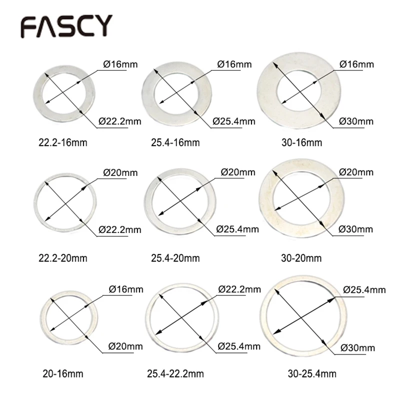 Кольцо для уменьшения пильного диска, кольцо для преобразования внутреннего отверстия, кольцо редуктора для внутреннего отверстия,Простота в использовании с лезвием для пилы и электрической шлифовальной машиной.Может использоваться в сочетании с вращающимися инструментами для резки металла, дерева, пластика и т. д.Примечание: