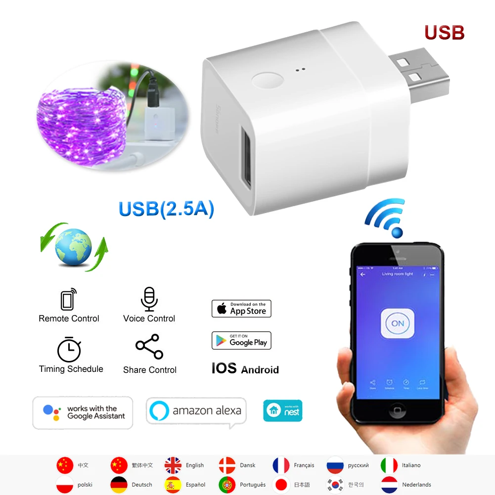 > MR. Чэнь Smart APP Wi-Fi переключатель; > Usb-разъем; > 2.5A/5%-90% относительной влажности; > Поддерживает сети Wi-Fi; > Бесплатное приложение для IOS и Android mobile; > Контролировать каждый пост управляется отдельно; > Контроль вашего умного дома вместе со своей семьей; > Поддерживает Статус устройства в реальном времени отображается при условии в приложение; > Поддерживает поворот/выключение электрических устройств в любом месте; > Таймеров на определённое время/Обратный отсчёт для включения/выключения в указанное время; > Поддержка max 8 с поддержкой по расписанию/обратного отсчета/таймеры для каждого устройства; > Поддерживает множество Wi-Fi умные выключатели на один смартфон (вы только в том случае, если вы хотите сделать устройств в приложении); > Работает с функцией Voice Amazon Alexa,Echo, Echo Dot, Amazon Tap; > Работает с функцией Voice Google Assistan/Home/Nest; > Работает с IFTTT. > И т. д...