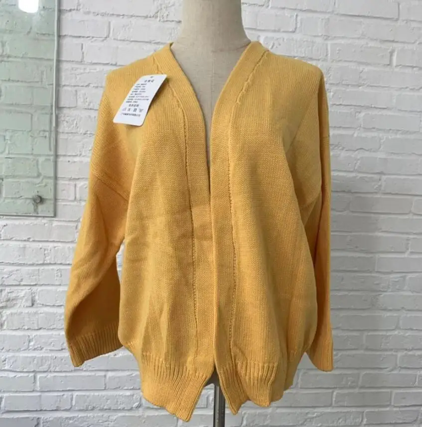 Material: Cotton,Polyester Size: One Size Color: Green,Yellow Technics: Flat Knitted Style: Casual Decoration: None Sleeve Length: Full Item Type: Cardigans Clothing Length: Regular Pattern Type: Solid Sleeve Style: Regular Collar: V-Neck Thickness: Thin Closure Type: Open Stitch Place Of Origin: China (Mainland) Ships From: China