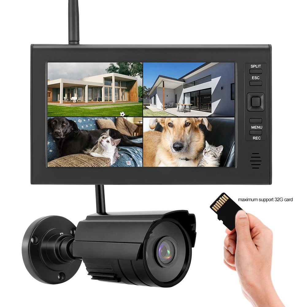 7 дюймов ЖК-дисплей Беспроводной WI-FI 4CH наблюдение езопасности Системы Дисплей + Камера 1 шт. ИК-Камера s + TF карты