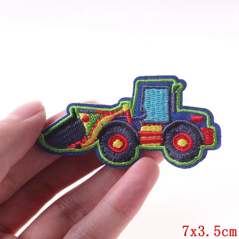Прайна мультфильм экскаватор патч железо на дешевые бульдозер вышитые патчи для детской одежды патчи милый швейный патч значок сделай сам