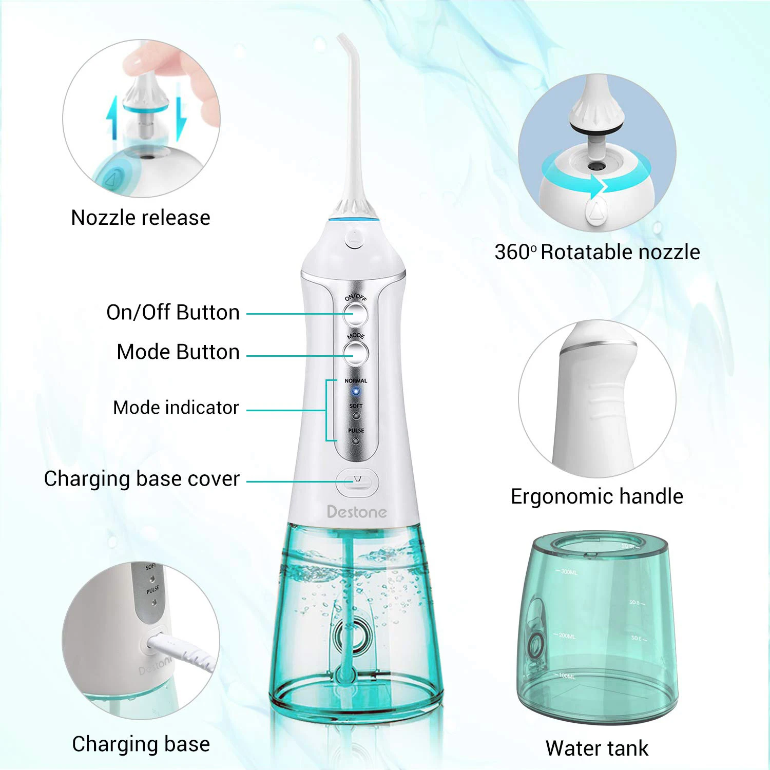 Ирригатор водный Флоссер беспроводной ortable перезаряжаемый ирригатор для полости рта с 4 режимами очистки носа IPX7 5 струйных наконечников deston Toocare T4