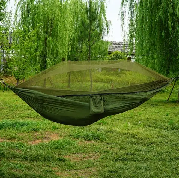 Новый нейлон гамак с сеткой от насекомых для туризма комаров управление парашютом ткань качели армейский зеленый двойной гамак на открытом воздухе