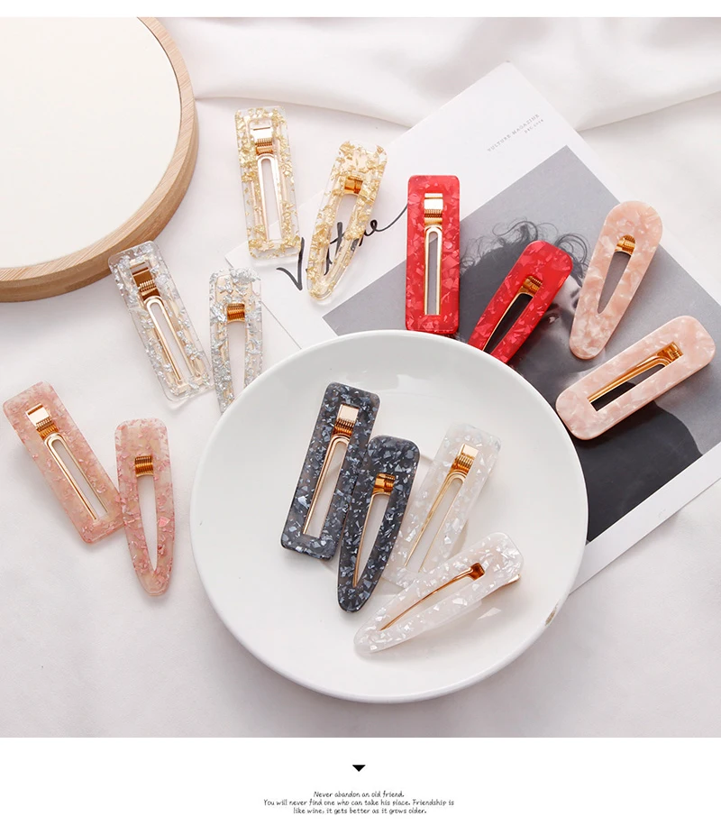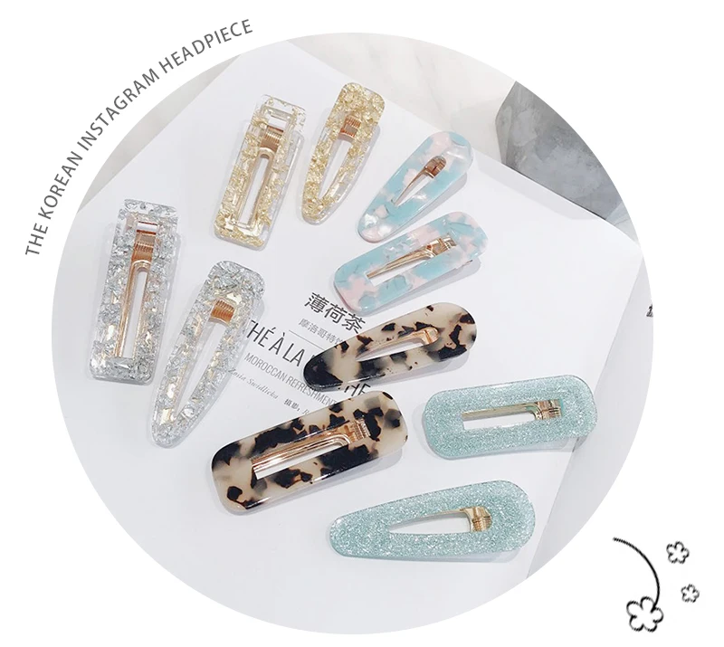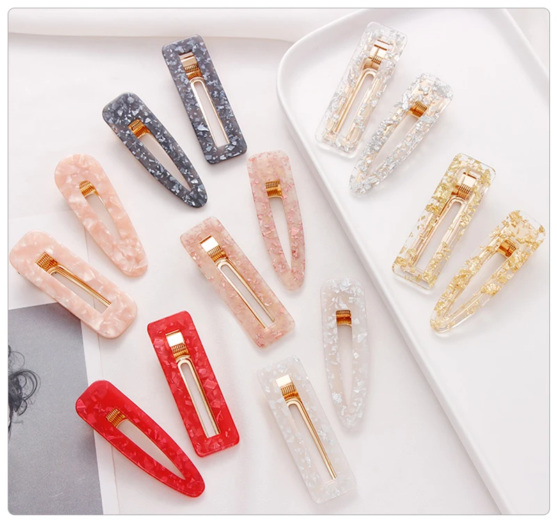 1 пара Ins, Модные женские милые прямоугольные заколки для волос из ацетата, заколки для волос, заколки для волос, аксессуары для волос Размер: длина около 6,8 см Упаковка: 1 пара (1 Прямоугольник + 1 капля) упаковка