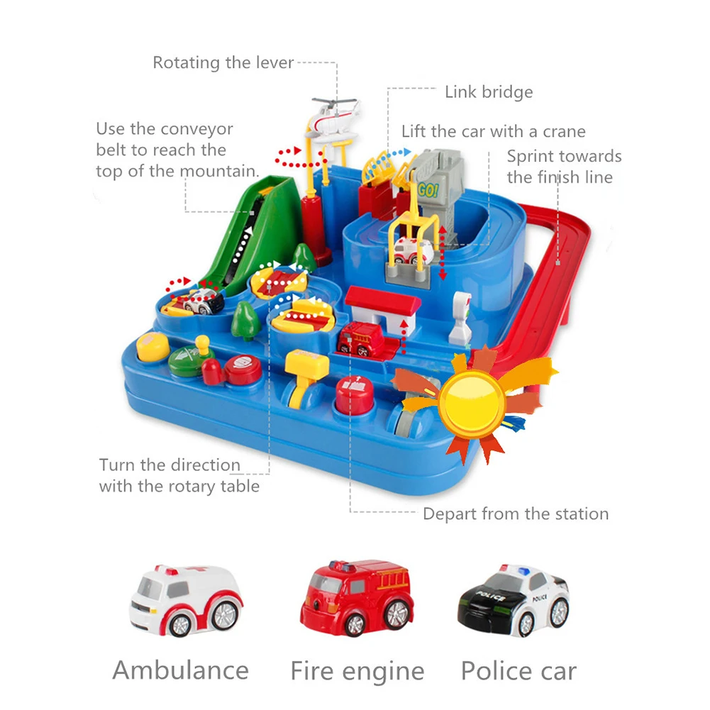 2. С помощью вертолетов, конвейерных лент, кранов, мостовых соединений и вращений дорожной ступицы, вы можете изменить трек, управлять автомобилем вперед, и достичь конечной точки плавно.