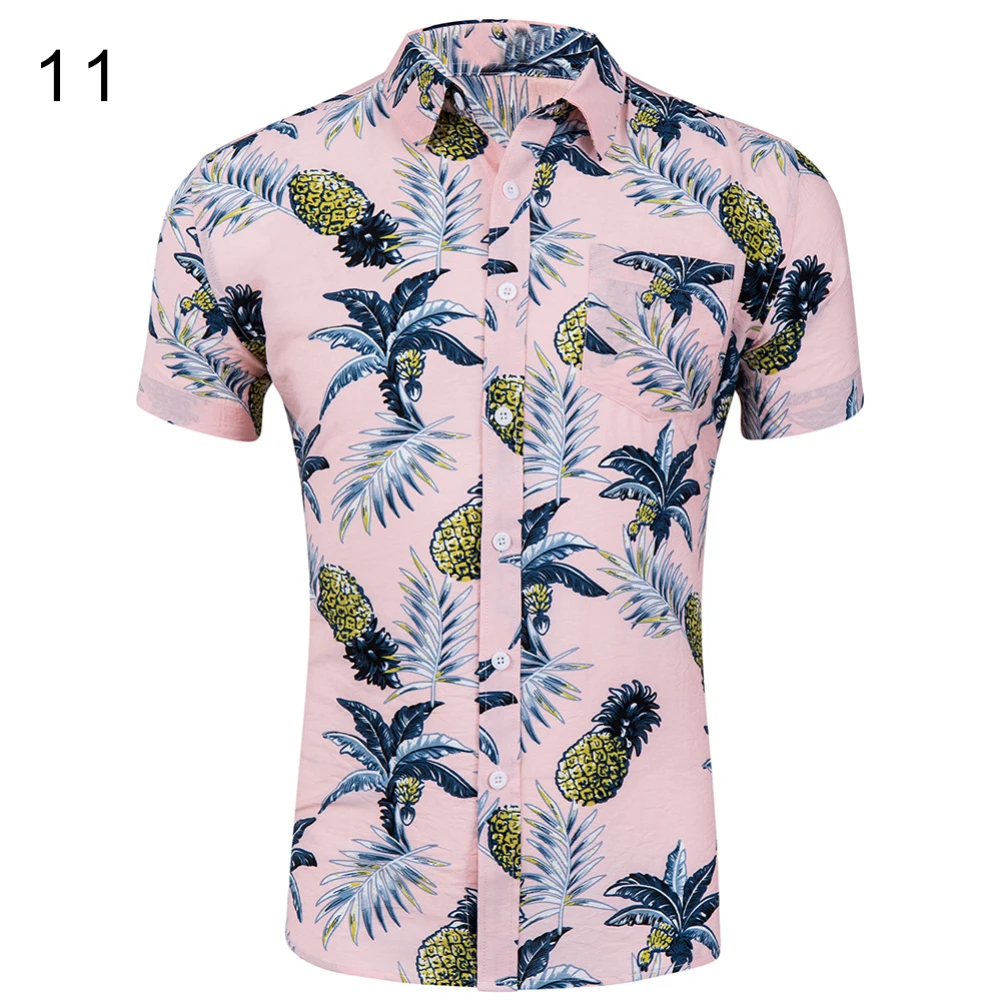 2019 New Fashion Hawaiian Pineapple Leaves Print Casual Shirts Clothing Men Turn Down Collar Short Sleeve Beach Party Shirt Tops