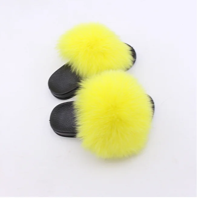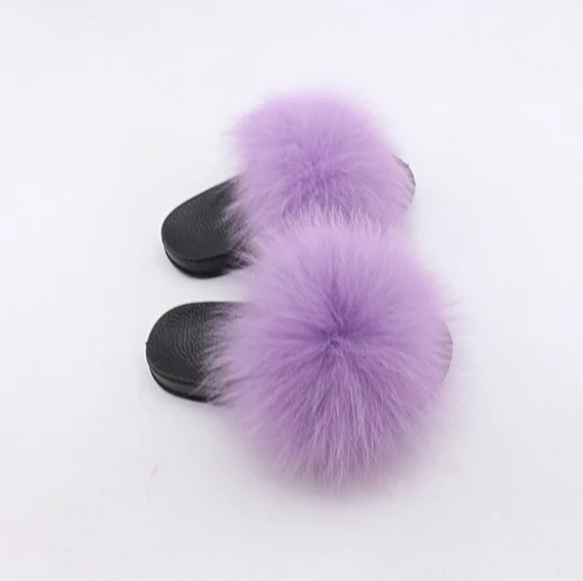 时尚狐狸毛厚底拖鞋女 2019 夏新款百搭松糕跟平底防滑外穿一字拖