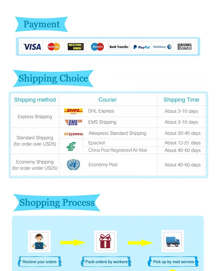 Мы принимаем Money Bookers,Western Union,Qiwi Wallet,Alipay через безопасный платежный процессор Escrow на Aliexpress.