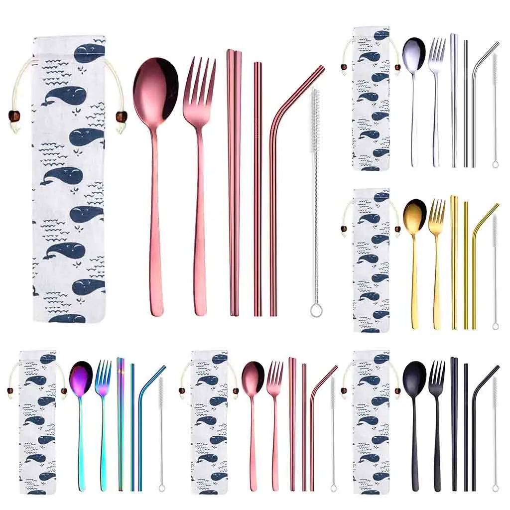 Набор посуды из нержавеющей стали, металлическая соломенная ложка, вилка, палочки для еды, посуда, 6 шт., набор посуды vajilla de porcelana