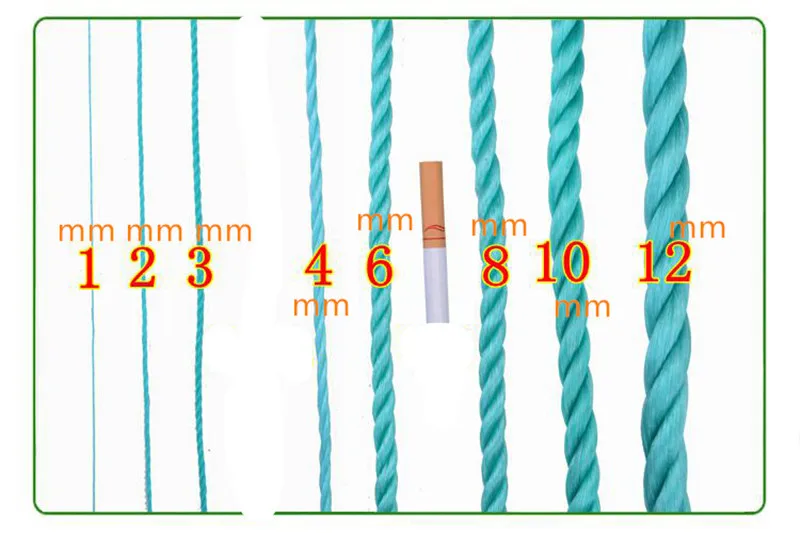 Название полиэтиленовой нейлоновой веревки высокой плотности (новый материал) Технические характеристики Диаметр 3/4/5 / 6 мм Цвет Зеленый ПЭ нейлоновая пряжа качественные материалы, солнцезащитный крем, антиоксиданты Используйте упаковку веревки садоводства веревки и так далее