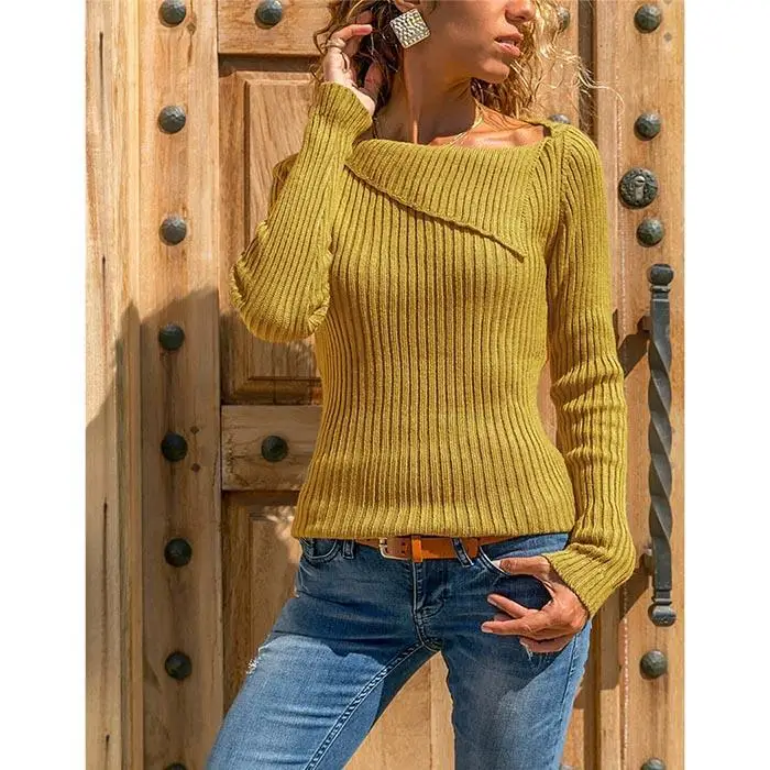Material: Polyester, Cotton 8 Colors: Yellow, White, Wine red, Purple, Gray, Dark Khaki, Black Collar: Irregular Neck Sleeve: Long Sleeve Style: Sweater Length: Regualr Pattern: Solid Decor: None Design: Slim, Bodycon, Pullover Occasion: Casual Garment Care: Hand-Wash(Max 40°C) Good quality fabric, and making style make you feel good and comfortable when wearing. Unique style,soft and stretchy,suit for casual wear. Package Content: 1 x Women Sweater Size: There are 8 sizes (S/M/L/XL/XXL/3XL/4XL/5XL) available for the following listing. please allow 1-2cm differs due to manual measurement, thanks (All measurement in cm and please note 1cm=0.39inch)