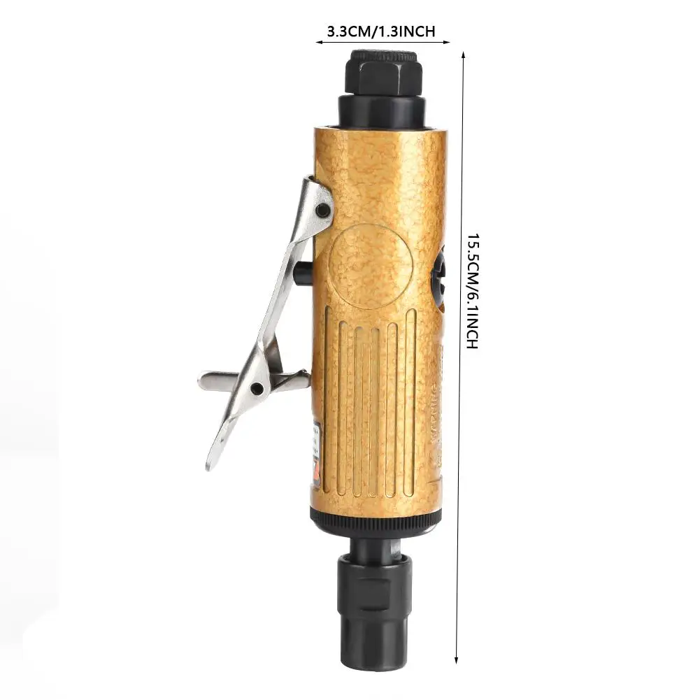 Высококачественный металлический материал, надежный и прочный в использовании. Компактный размер, легкий вес, высокая скорость и низкий уровень шума. Небольшой расход воздуха, высокая концентричность, плавный бег и износостойкость. Хорошая Механическая производительность, идеальный инструмент для полировки и шлифования. Подходит для шлифования, обрезки и формирования поверхности металлических деталей, деревянных компонентов, резиновых шин и отливок.