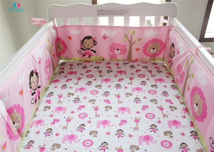 Хлопковые бамперы для детской кровати с рисунком из мультфильма, розовые милые детские простыни для кровати, стеганое одеяло, юбка для девочек, дышащие комплекты постельного белья для детской кроватки