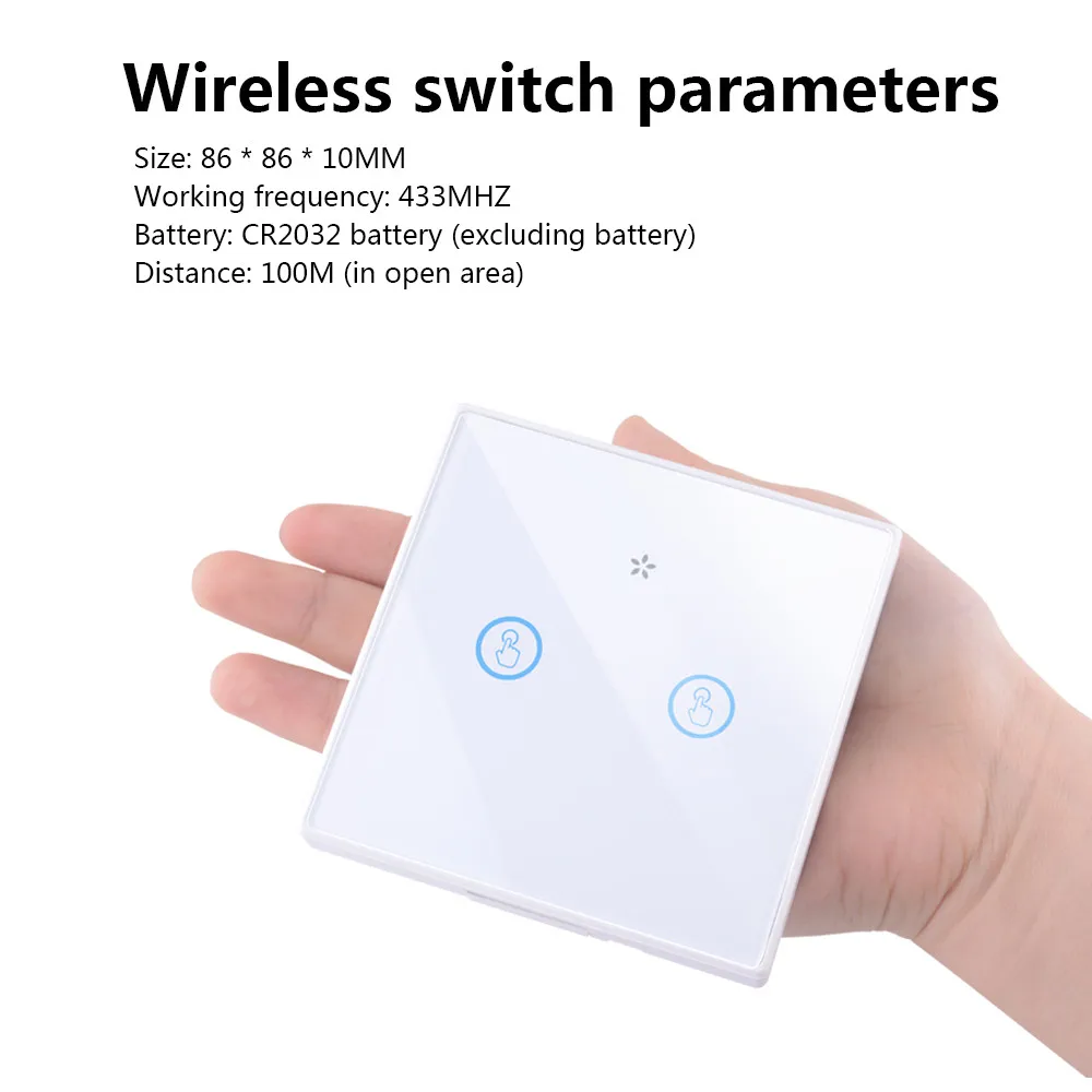 1. Закаленное стекло HD 2. Рабочее напряжение: 3 В постоянного тока 3. Рабочая частота: 433,92 МГц 4. Мощность передачи: <10 мВт 5. Расстояние дистанционного управления: <50 метров (расстояние внутри помещения) 6. Метод работы: беспроводной пульт дистанционного управления 7. Метод кодирования: код обучения 8. Метод модуляции: ASK 9, Рабочая температура: -10 градусов C ~ + 70 градусов C 10, Размер: 86*86 * (мм) 11. Стандартная батарея, батарея Cr2032, (не содержит батарею)