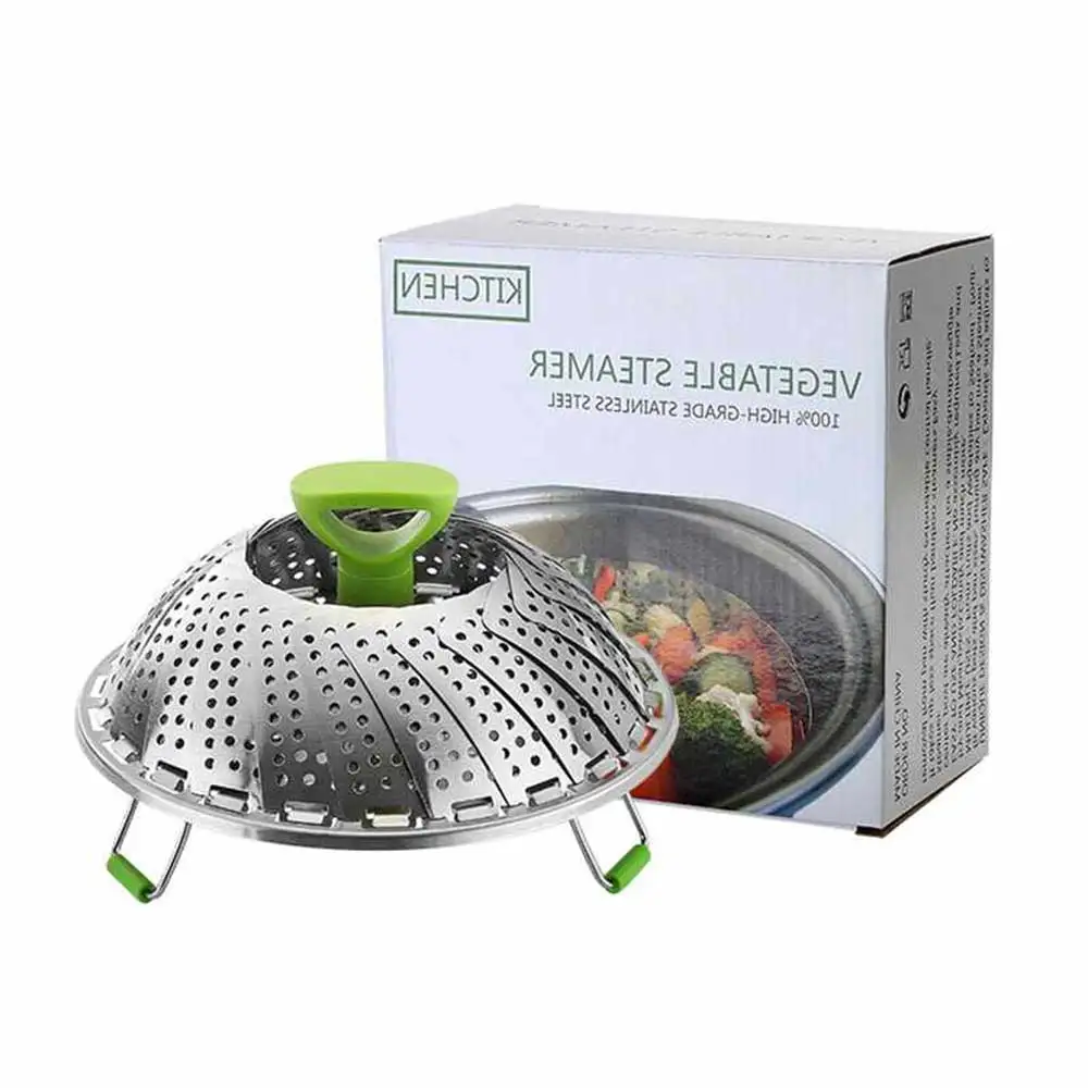 Более здоровый выбор для приготовления пищи-корзина для пароварки с лепестками из нержавеющей стали высокого качества, пластиковая ручка для пищевых продуктов и силиконовые ножки гарантируют ваше здоровье. Отпаривание является здоровым выбором для приготовления пищи, потому что помогает сохранить более 90% питательных веществ, утерянных при закипании или микроразвевании пищи. Складная Пароварка может использоваться для паровых овощей, морепродуктов, яиц, мяса, десертов, детского питания и многого другого.